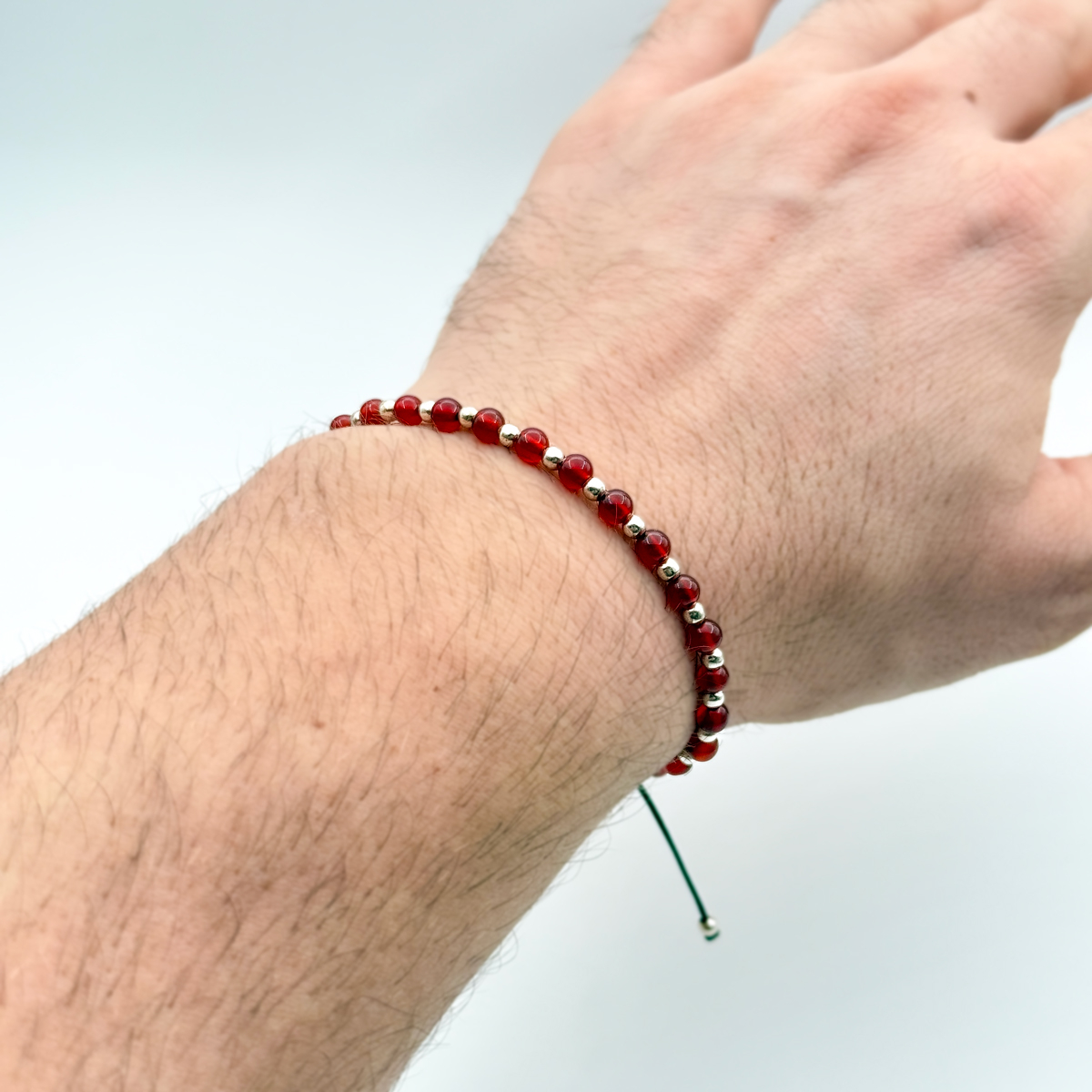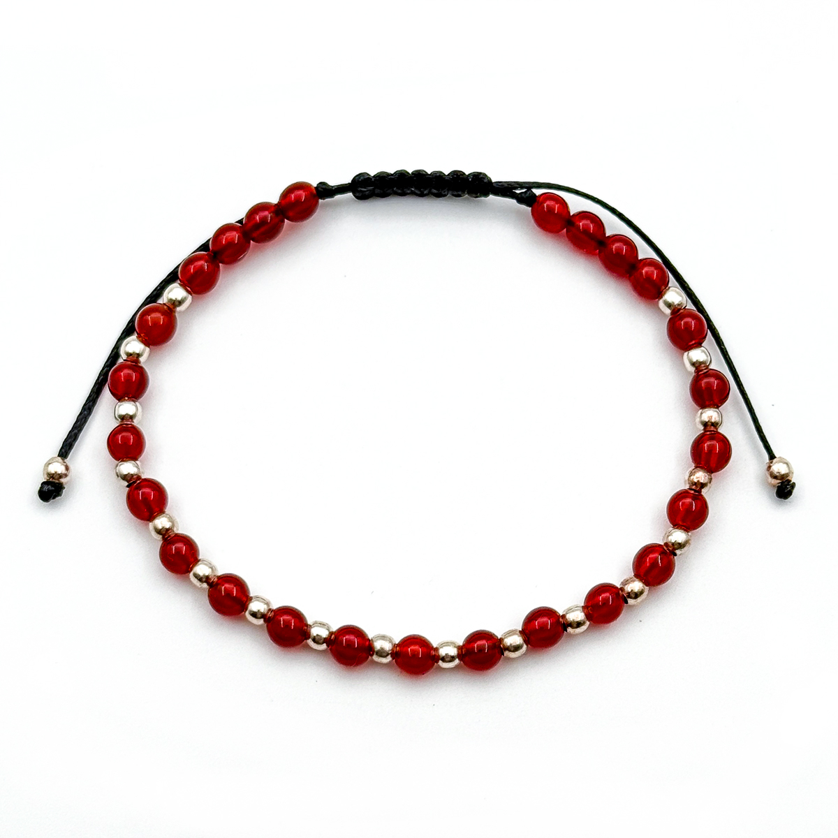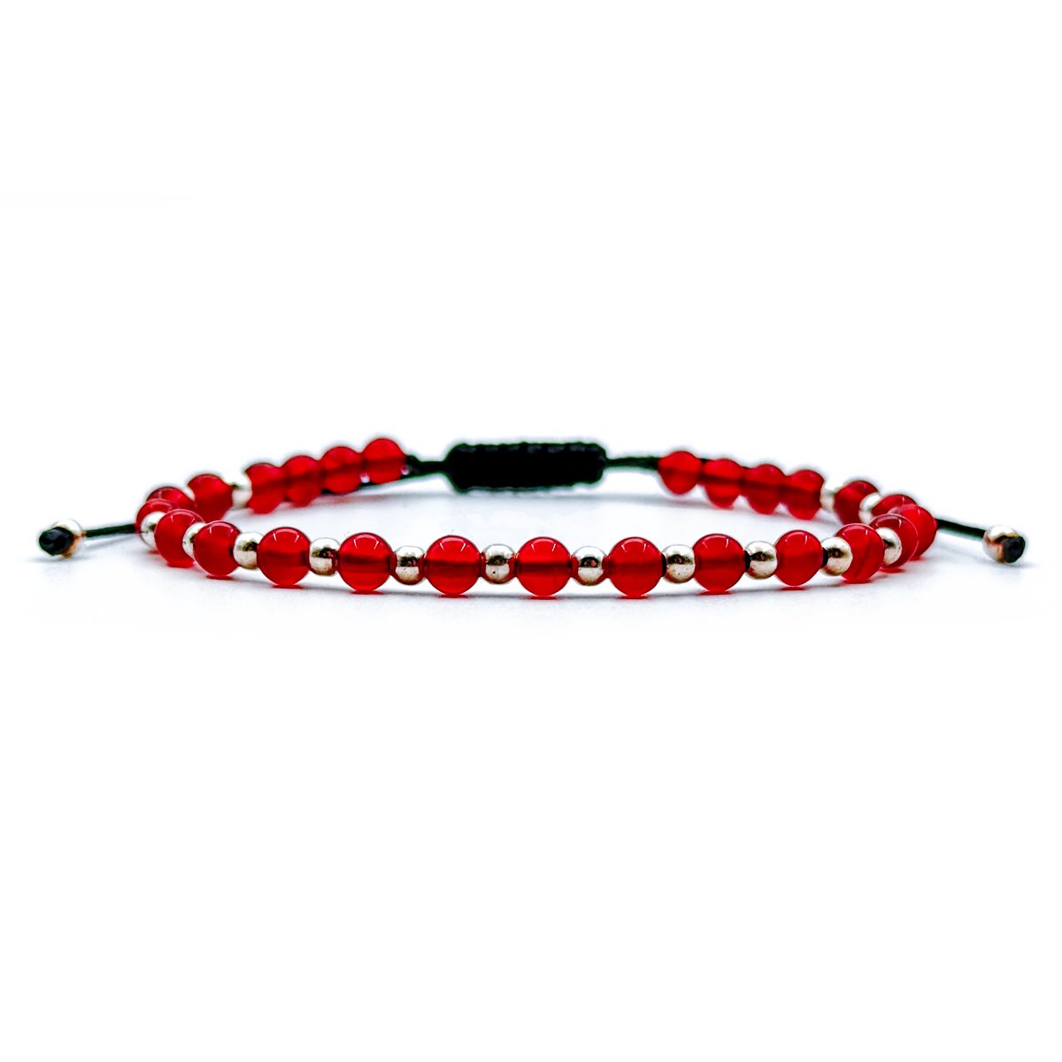 Bratara Velar confectionata manual in propriul atelier cu bile din argint 925, pietre semipretioase agate rosii si snur acoperit cu ceara pentru o durabilitate maxima. Complet reglabila pentru o potrivire perfecta.