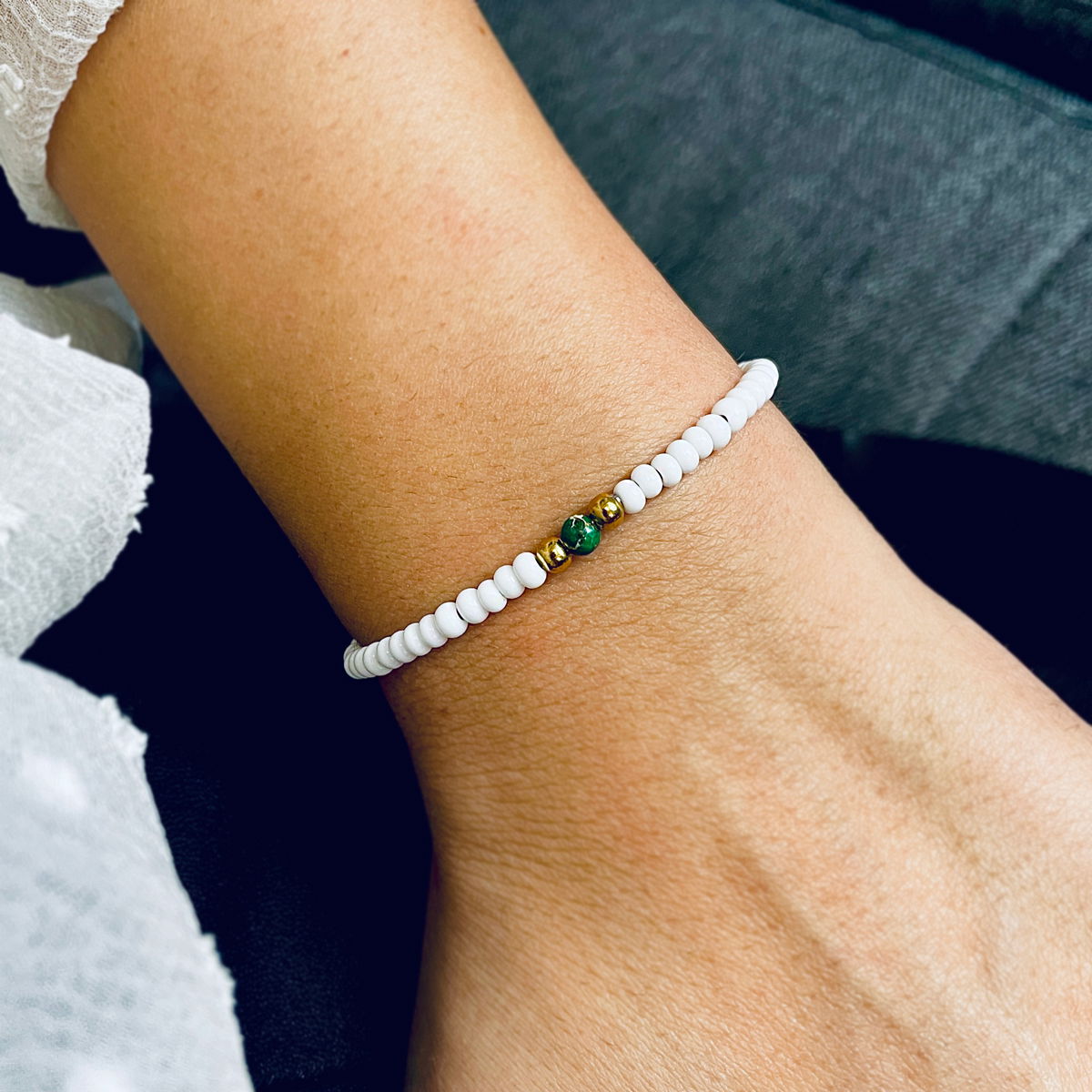 Bratara Velar cu Bile Albe si Piatra Semipretioasa